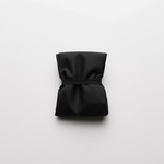 Black metal snap to close, elastic cord to secure once folded